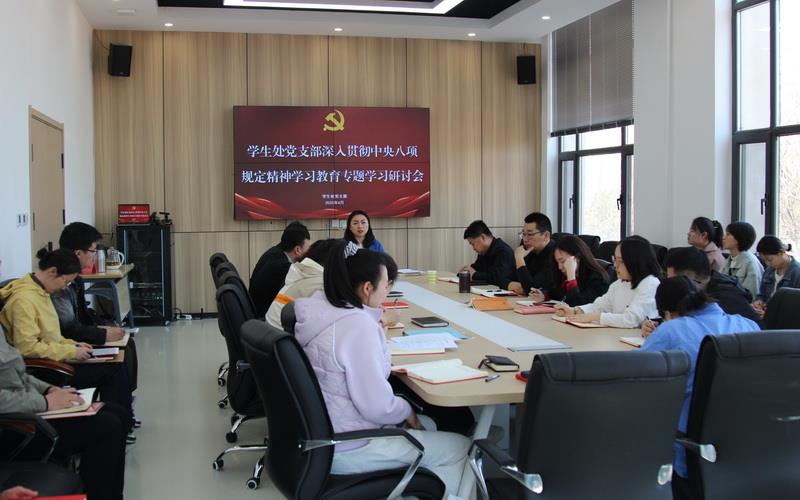 4月28日上午,学生处党支部在霍林河校区大学生“一站式”服务中心召开深入贯彻中央八项规定精神学习教育专题学习研讨会。会议由党支部书记尚丹主持,全体党员参加会议。